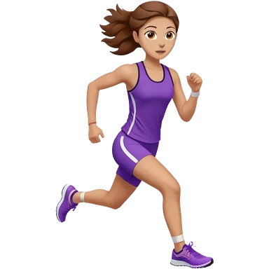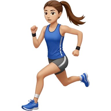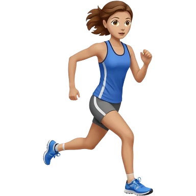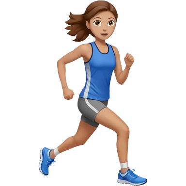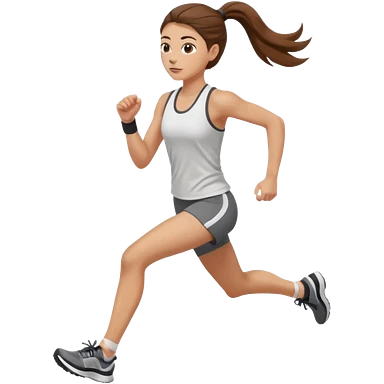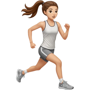 running woman with long brown hair in ponytail, light skin, hazel eyes. emoji