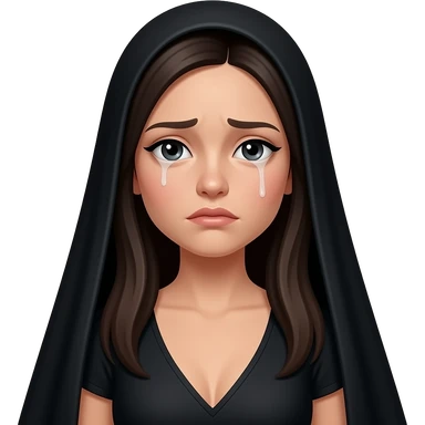Light tan girl wavy long hair black, cleavage wearing white top and dark black eyes emoji
