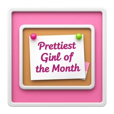 A cute pink wall with a bulletin board style announcement that says “Prettiest Girl of the Month”, pinned on the wall inspired by barbie colour palette emoji