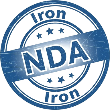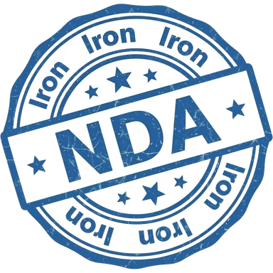 Stamp saying "NDA" in the centre, with "Iron emoji