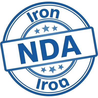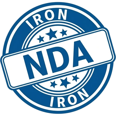 Stamp saying "NDA" in the centre, with "Iron" on the outside. Make it colored #0082fb emoji