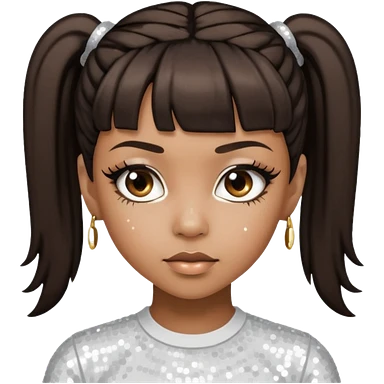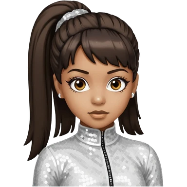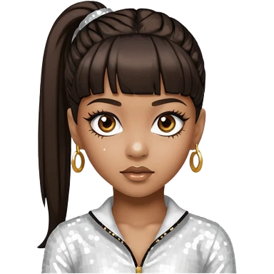 Left Eye from TLC with dark brown ponytail hair, white sequin outfit emoji