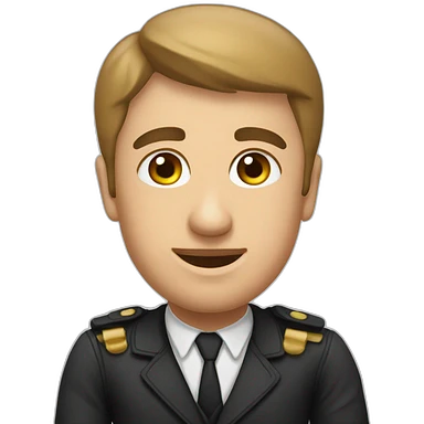 Emoji iPhone seorang pria dengan rambut hitam, dengan poni, mengenakan atasan jas berwarna coklat kehijauan , mata gelap emoji