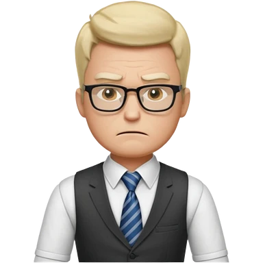 Frowns with Glasses, Strict Teacher: Man with square glasses, vest and tie, arms crossed, angry face emoji