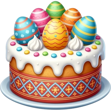 Russian motifs background, Easter cake with white cream and colorful decorations emoji