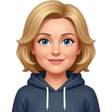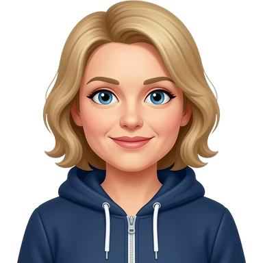 AJM - woman, blue eyes, mid 40's age, silver small hoop earrings, light brown hair, rectangular glasses, shoulder length wavy hair, small tiffany heart necklace, ted baker coat emoji