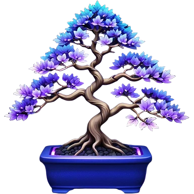 Rustic shiny crystal black-purple fiber optic lights maple cobalt tiny bonsai origami emoji | AI Emoji Generator