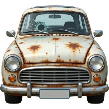 rusty white car with a broken windshield emoji