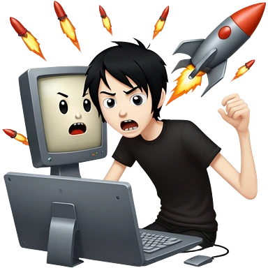 a skinny emo boy playing rust on his 2000 DOLLAR computer that as hes screaming in pure abysmal rage because he got raided when he had a full row of rockets emoji