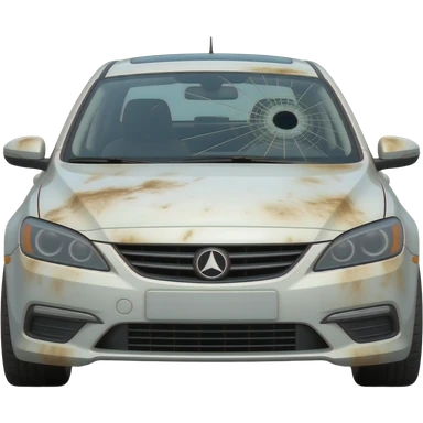 Broken down old car covered in rust and vines, cracked windshield, weeds growing through wheels, muted desaturated browns and greens, decay texture, forgotten and overgrown emoji