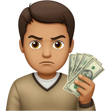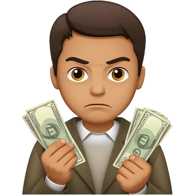 a guy who holds his money in his hands and looks angrily because he doesn't want to share it with anybody, he is a cheapskate emoji