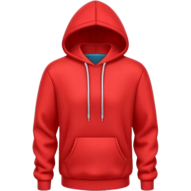 A 3D cartoon red hoodie with soft folds, drawstrings, and a casual fit, isolated plain background. plain , no texture. emoji