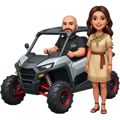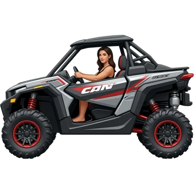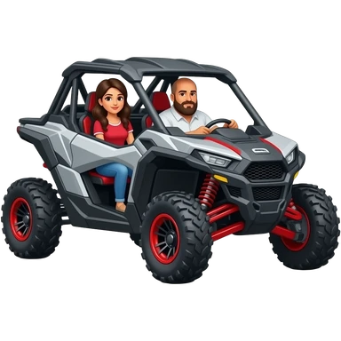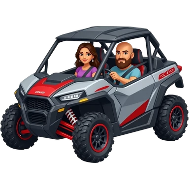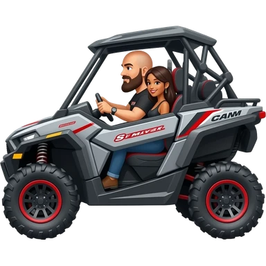 Sxs Grey and red can am maverick racing sxs with husband driving (he’s fat bald with really big beard)and wife that is Indian with brown hair emoji