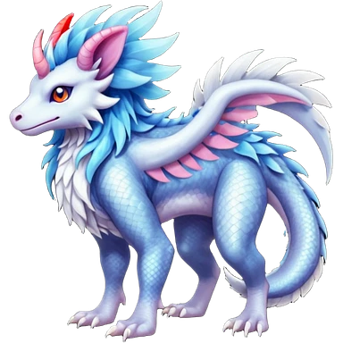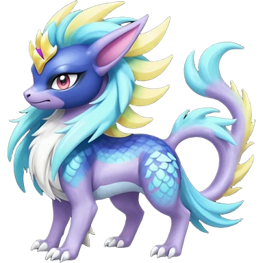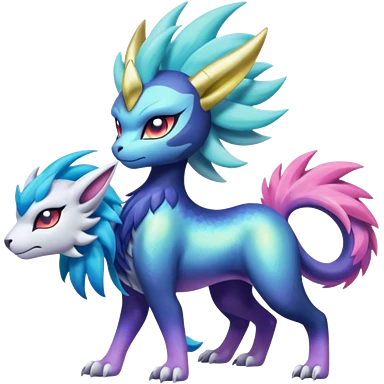 Shiny Glossy Pastel Light Divine Reptilian Draconian Furry Scaly Hairy Feathery Bovine Goated Feline Beautiful Floral Snowy Pretty Absol-Amaura-Suicune-Cobalion-fusion, full body emoji