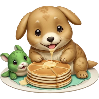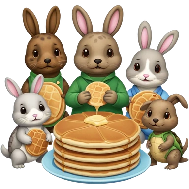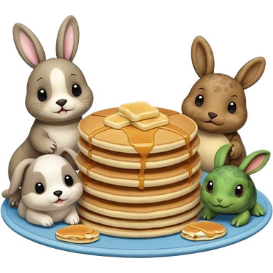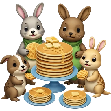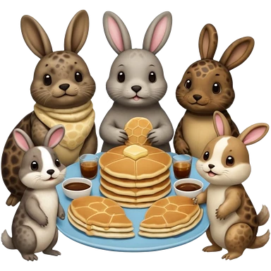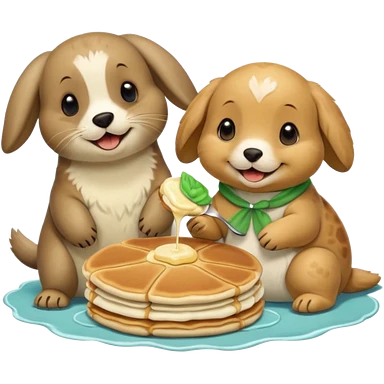 Seal, dog, bunny, turtle eating pancakes emoji