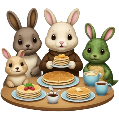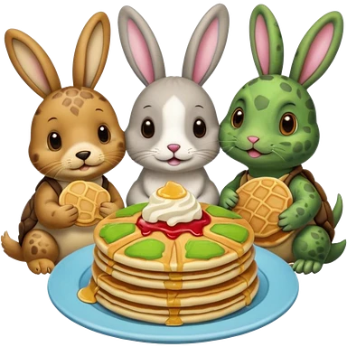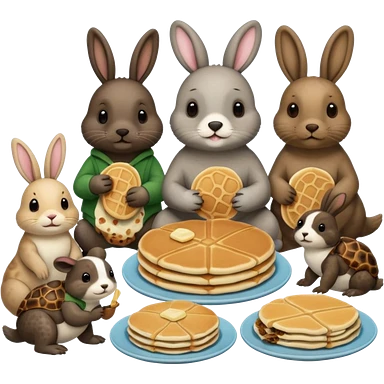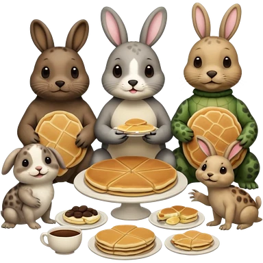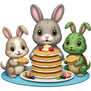 Seal, dog, bunny, turtle all eating pancakes in 1 image together emoji