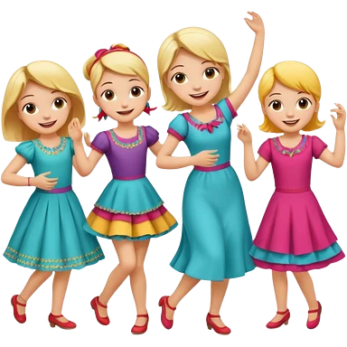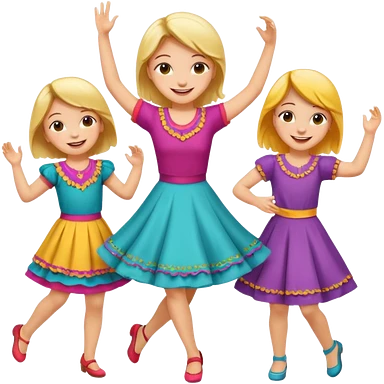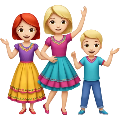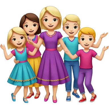 Super happy kids dancing and mom is sewing emoji