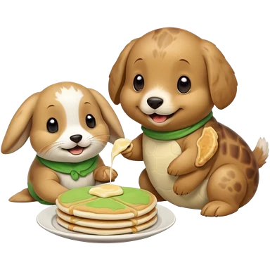 Seal, dog, bunny, turtle eating pancakes in 1 image emoji