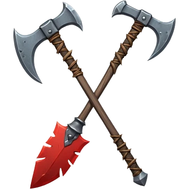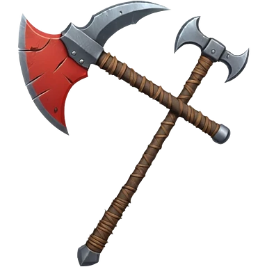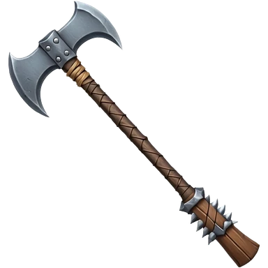savage barbarian axe object icon, spiked double blade, battle-worn metal, scratches, heavy fantasy weapon, 3D cartoon, mobile game icon style, centered, clean background, no text, no watermark emoji