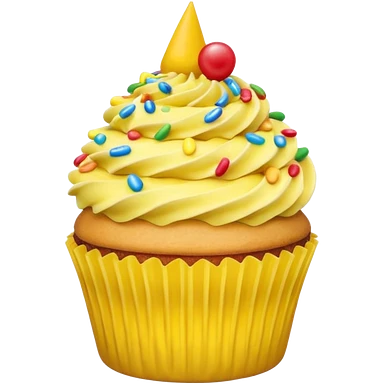 Valentine’s Day themed cupcake with white icing and sprinkles emoji