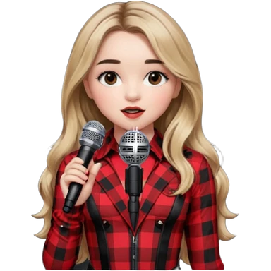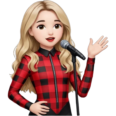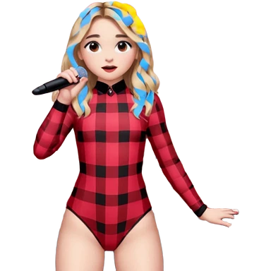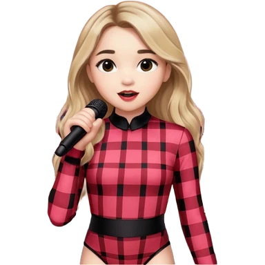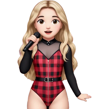 Sabrina carpenter singing at concert wearing a black and red plaid bodysuit emoji
