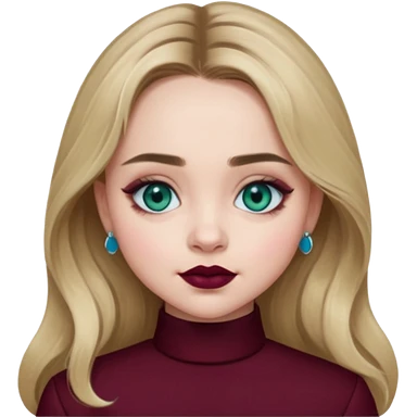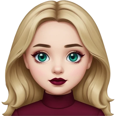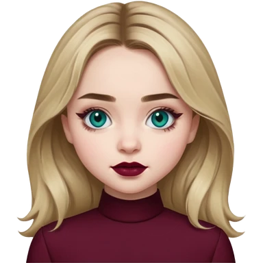 Sabrina carpenter blue-green eyes wearing burgundy lipstick emoji