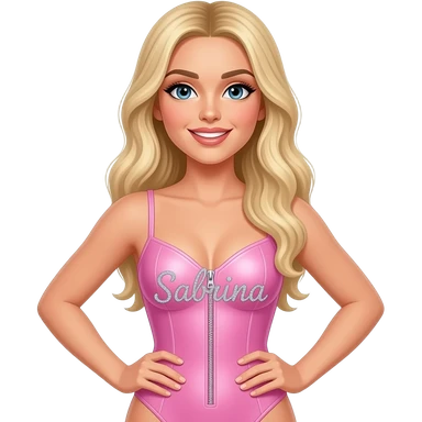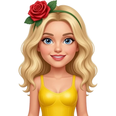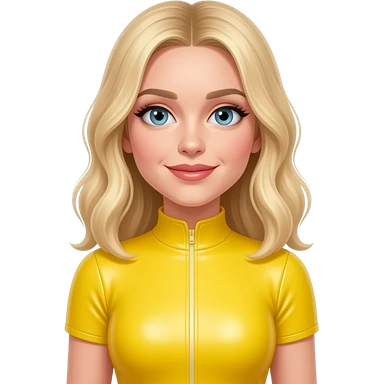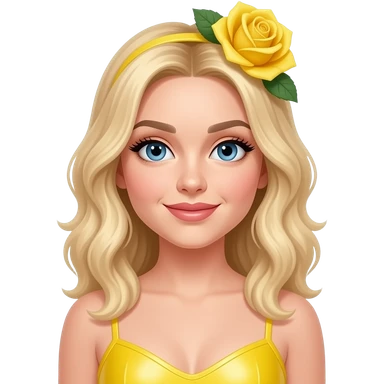 Sabrina Carpenter blue eyes, long blonde hair, yellow a-line dress emoji