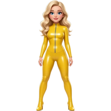 Sabrina carpenter blonde hair performing in a bright yellow silicon bodysuit emoji