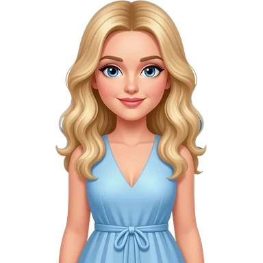 Sabrina Carpenter blue eyes, long blonde hair, yellow a-line dress emoji
