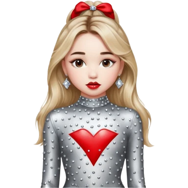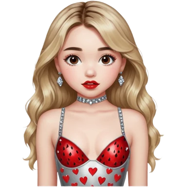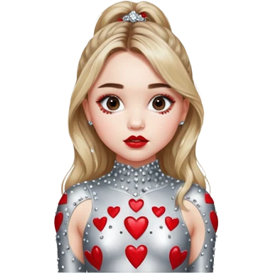 Sabrina carpenter in silver rhinestone bodysuit with red lips all over it, full body emoji