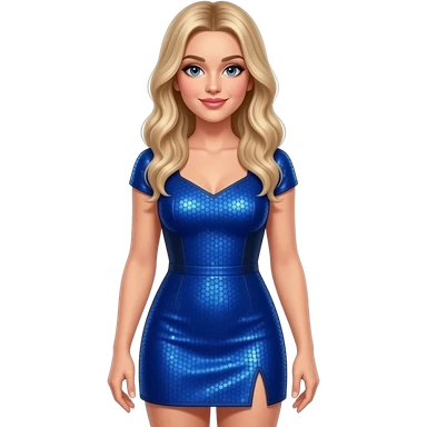 Sabrina carpenter is wearing a blue dress that features a structured silhouette with dark contrast trim (giving it a slightly sporty, cheer-inspired edge) and shimmering sequins that caught the desert stage lights perfectly. emoji | AI Emoji Generator