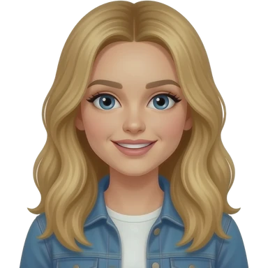 Sabrina Carpenter with blue eyes, long platinum blonde wavy hair, light blue metallic corset, light blue metallic skirt, silver necklace emoji