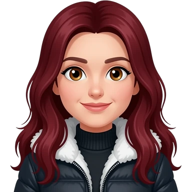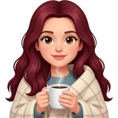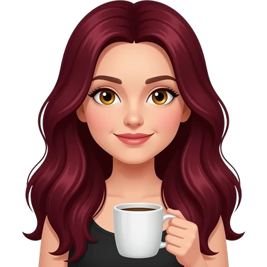 Saç koyu kırmızı rengi olucak çok uzun saç olucak göz rengi ela olucak kahve içmeyi severim kurdele ve çiçeklere bayılırım. emoji | AI Emoji Generator