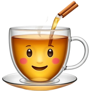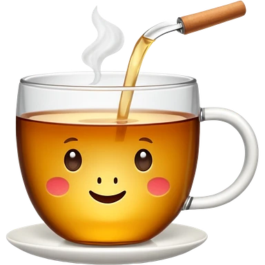 Une tasse de thé chaude avec le sachet de thé qui infuse. emoji