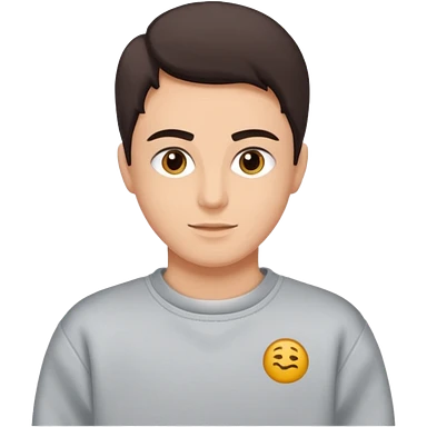 Saçı uzun ve arkadan bağlı, beyaz tenli, sakallı 24 yaşlarında, üzerinde gri sweat olan bir erkek çiz emoji