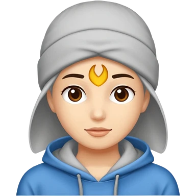 Saçı arkadan bağlı beyaz tenli kirli sakallı 24 yaşlarında üzerinde gri kapüşonlu sweat olan bir erkek çiz emoji