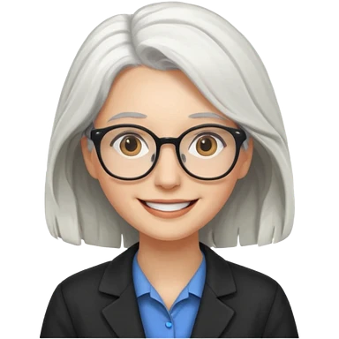Profesora joven, sonrriente cabello gris canoso y de pelo largo emoji