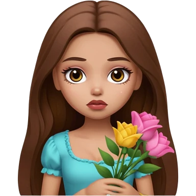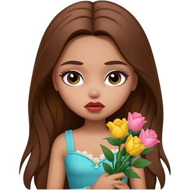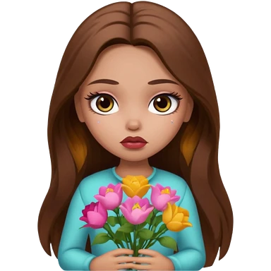 sad pretty bratz baddie, long brown hair holding flowers emoji