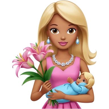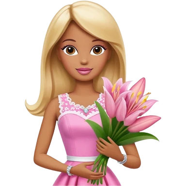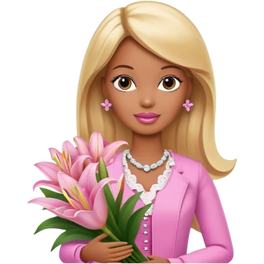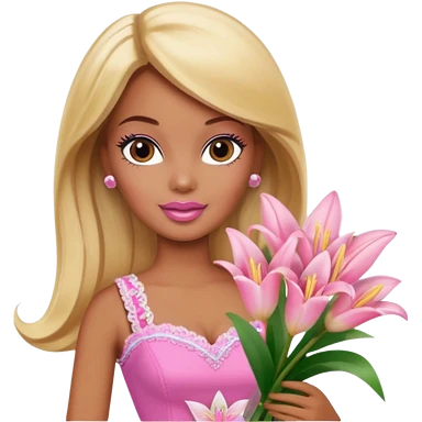 Brown skin blonde hair barbie with baby pink lily bouquet emoji
