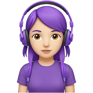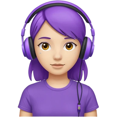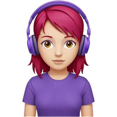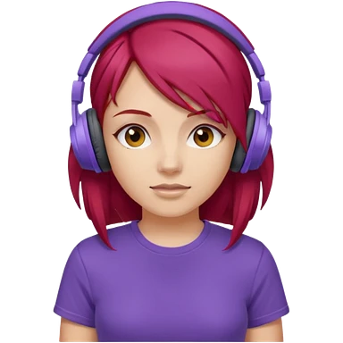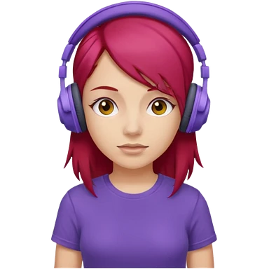 girl with purple headphones and tshirt red hair emoji