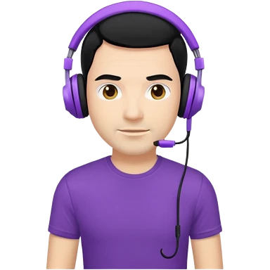man with purple headphones and tshirt black hair emoji