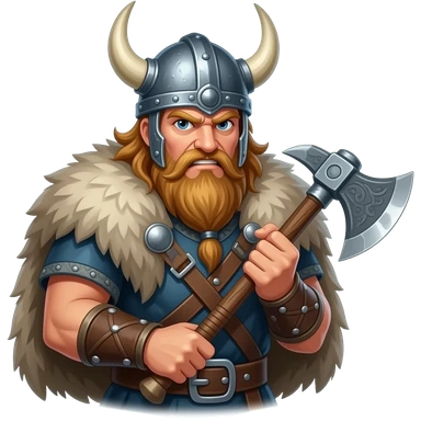 a very sad Danish Viking with an ax in his hands sits sad realistic emoji
