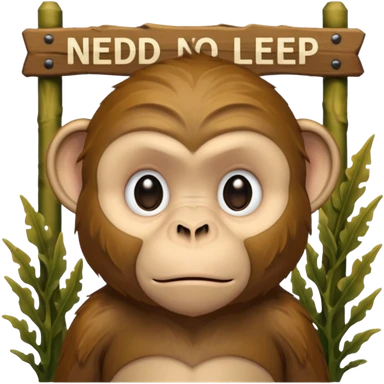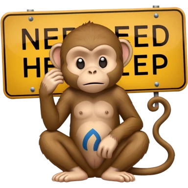 Sad Monkey sitting beside a 'heed nelp 🥺' sign, emoji