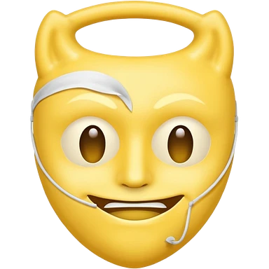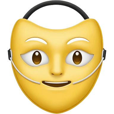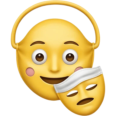 An emoji-style image of a sad face holding a smiling mask in front of it. The background is black. emoji