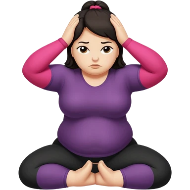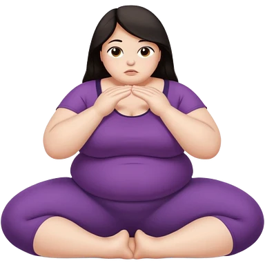 Sad fat girl doing yoga dark hair emoji