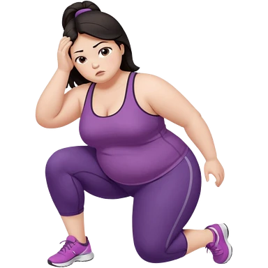 Sad fat girl doing side plank dark hair emoji