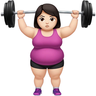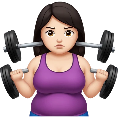 Sad fat girl lifting weights dark hair emoji