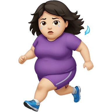 Sad fat girl running dark hair emoji