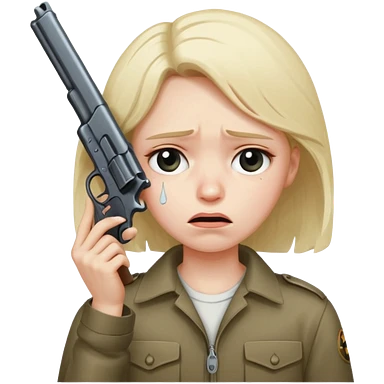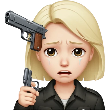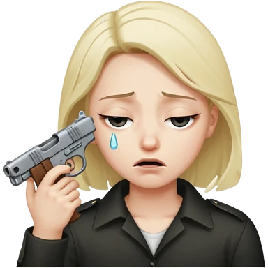 sad face with a gun pointed to its head emoji