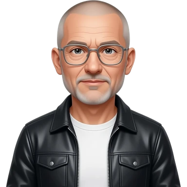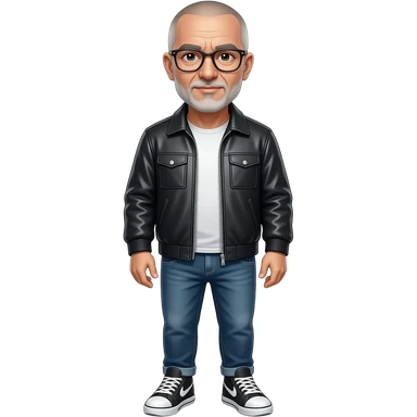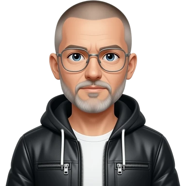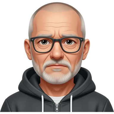 sad almost bald shaved short hair full-length photo of extreme streetwear clean-shaven face cool boy thin metal-framed glasses ery entellectual man, 65 years old, street wear stubble, shaved short with clippers emoji